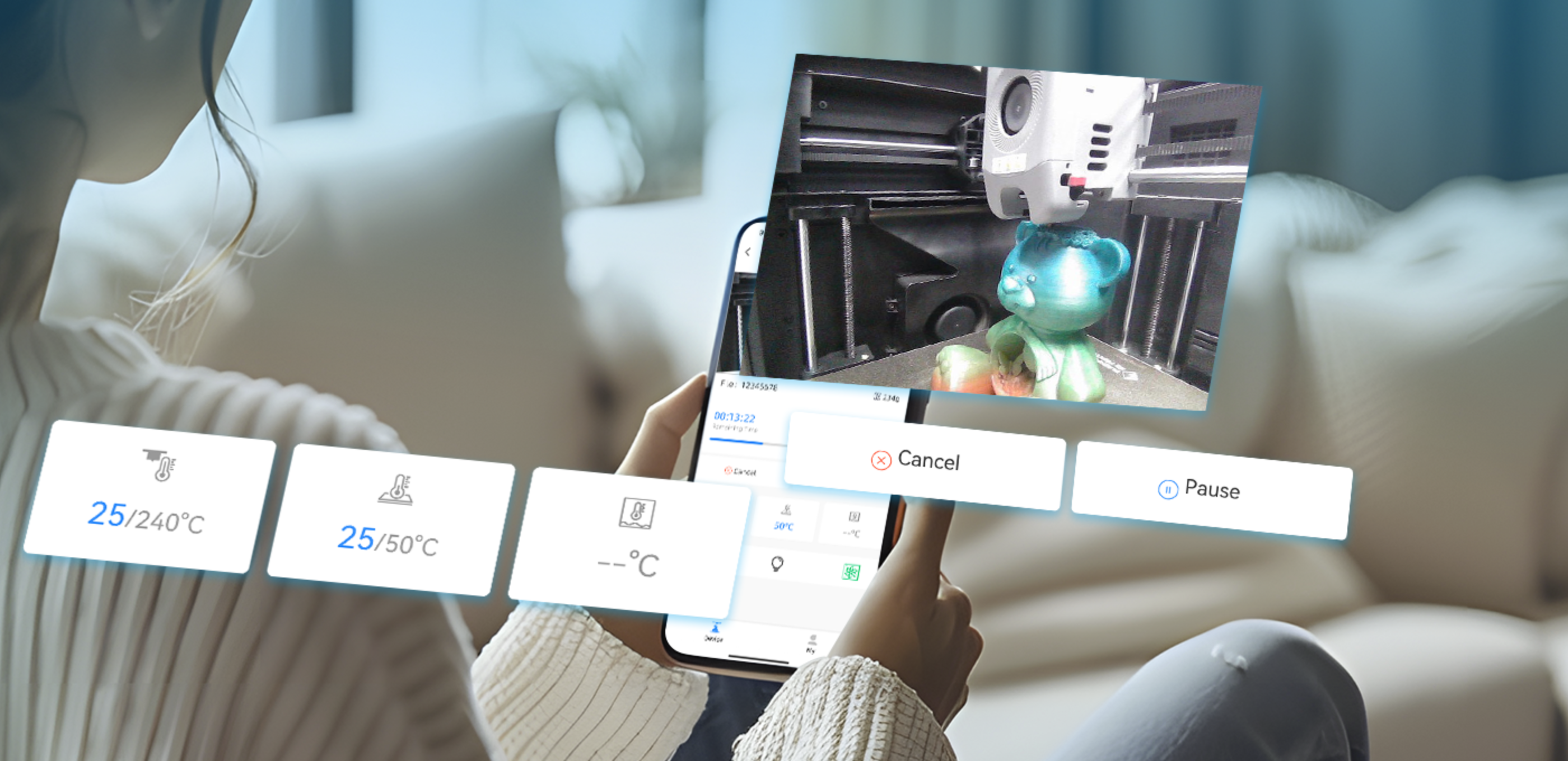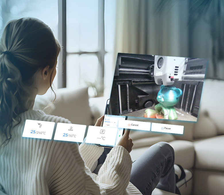 No need to be tethered to your printer, Bind one or more 3D printers to view real-time updates, including print progress and material details, from anywhere
