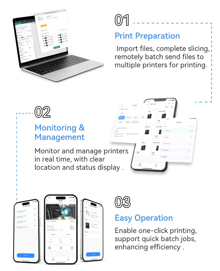 For print farm owners: Manage dozens or even hundreds of printers at ease.